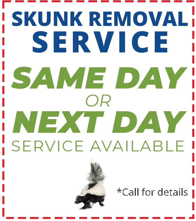 Skunks can do thousands of dollars in property damage by establishing a nest in your home or attic. Skunk removal services are needed when these pests decide to make your home their home. Skunks are known to transmit bacteria and other diseases so it’s important to get rid of them quickly and keep them from getting back in!